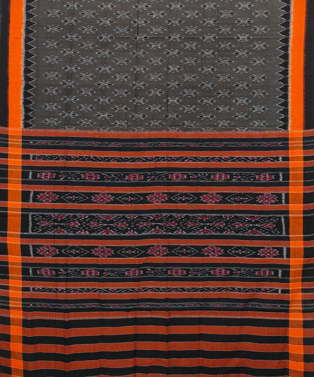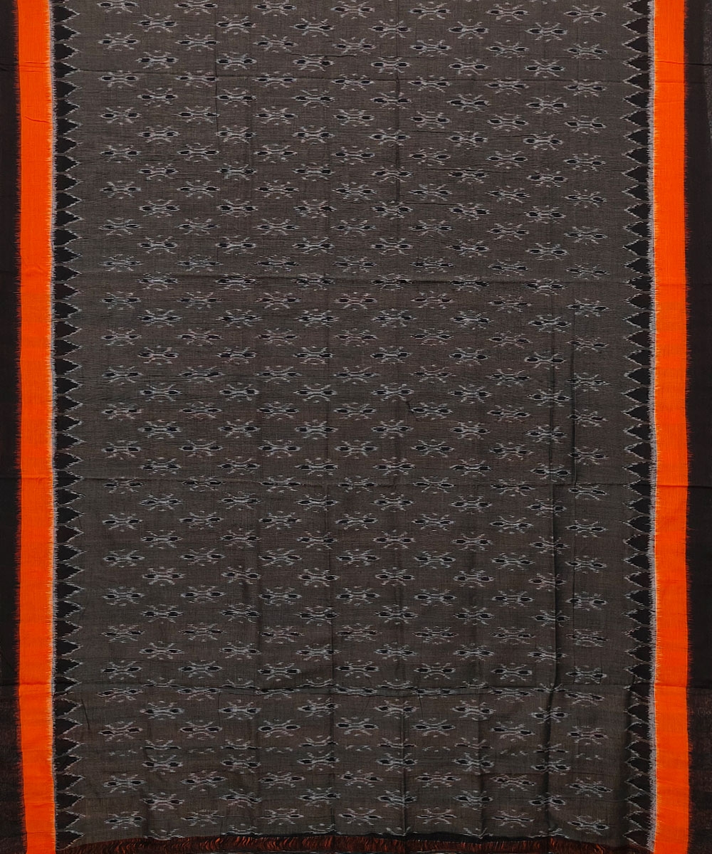 Gray Black Nuapatna Handwoven Single Ikat Cotton Saree(SFCSAR1184)