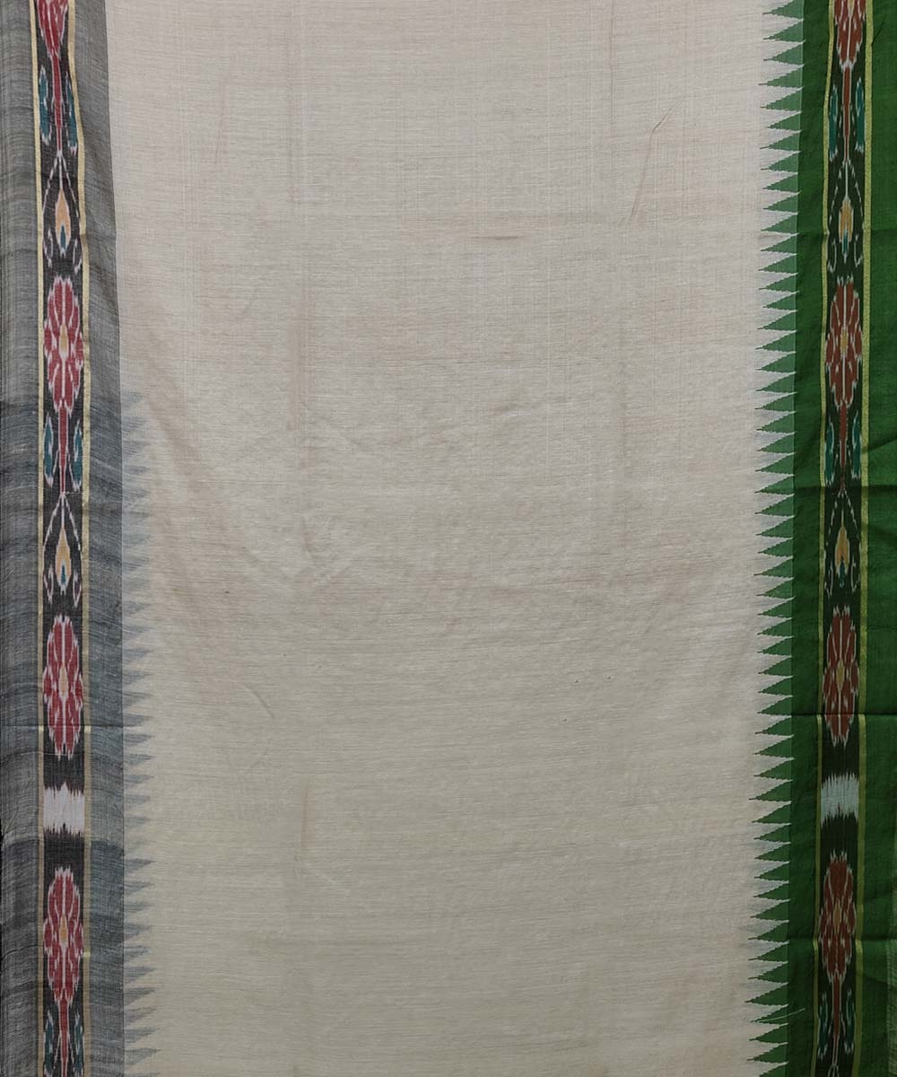 Beige Green Sambalpuri Handwoven Ikat Border Tussar Silk Saree(SFTSAR1394)