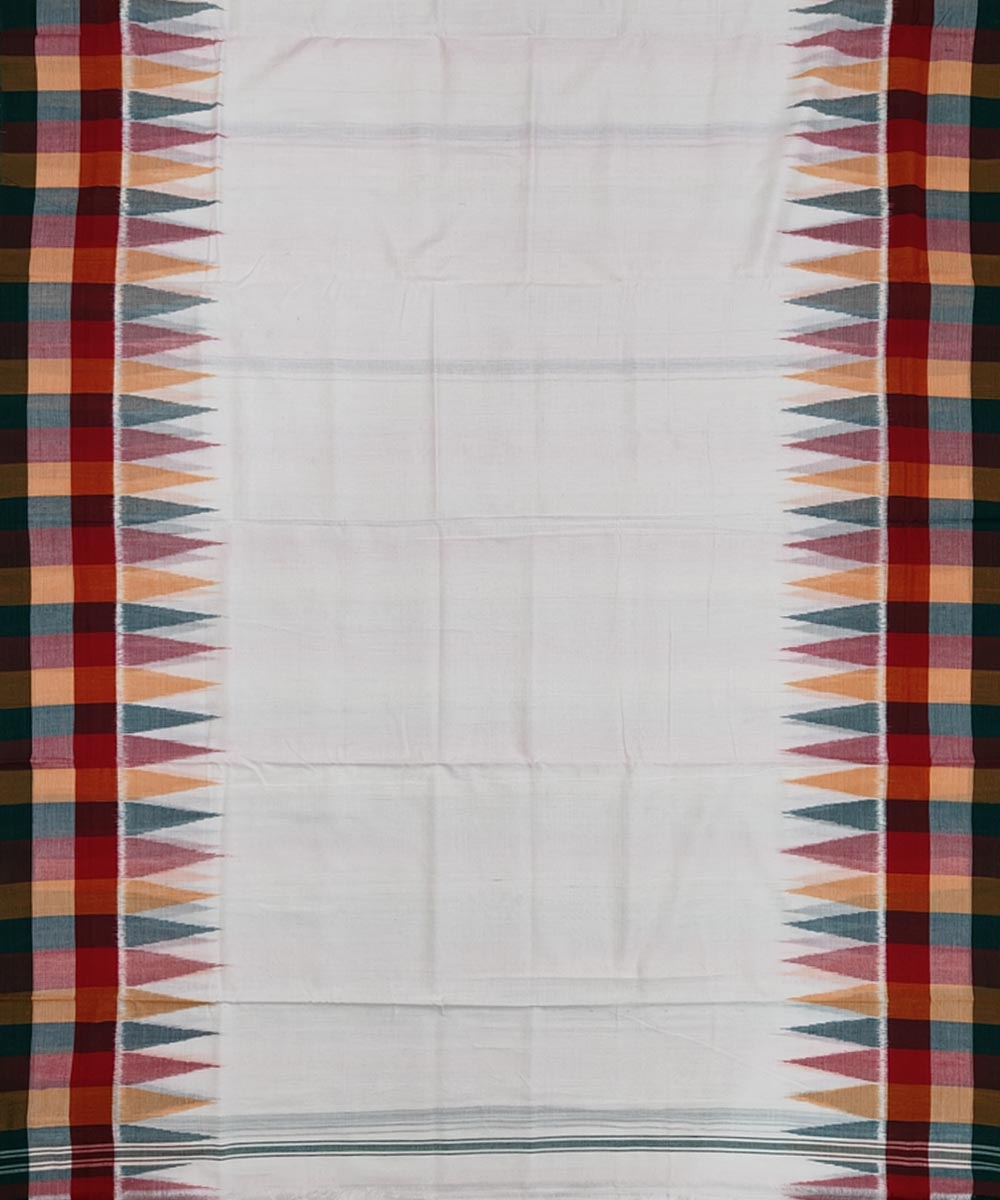 White Sambalpuri Handwoven Ikat Cotton Joda(SFCJOD1472)