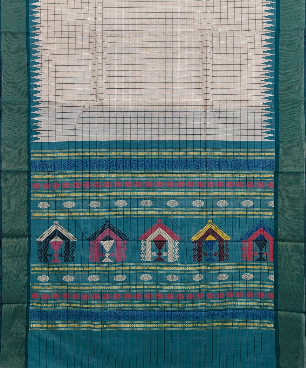 Beige Green Sambalpuri Handwoven Dolabedi Tussar Silk Saree(SFTSAR1518)