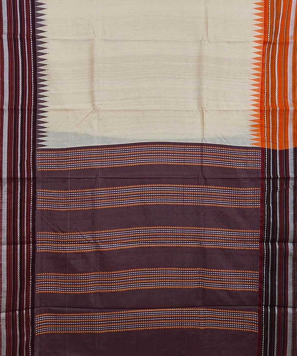 Beige Black Sambalpuri Handwoven Wide Border Vidarbha Tussar Silk Saree(SFTSAR1520)