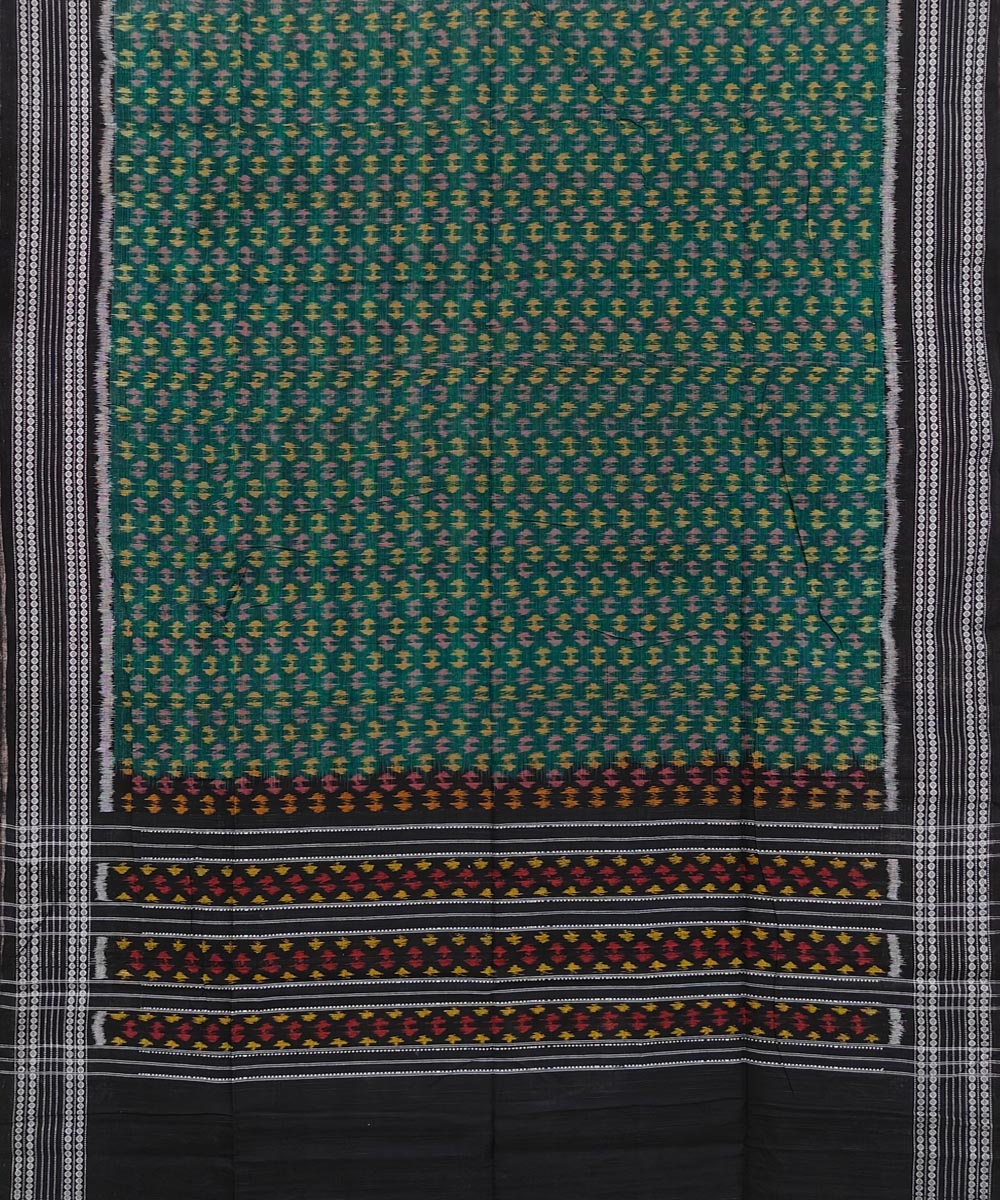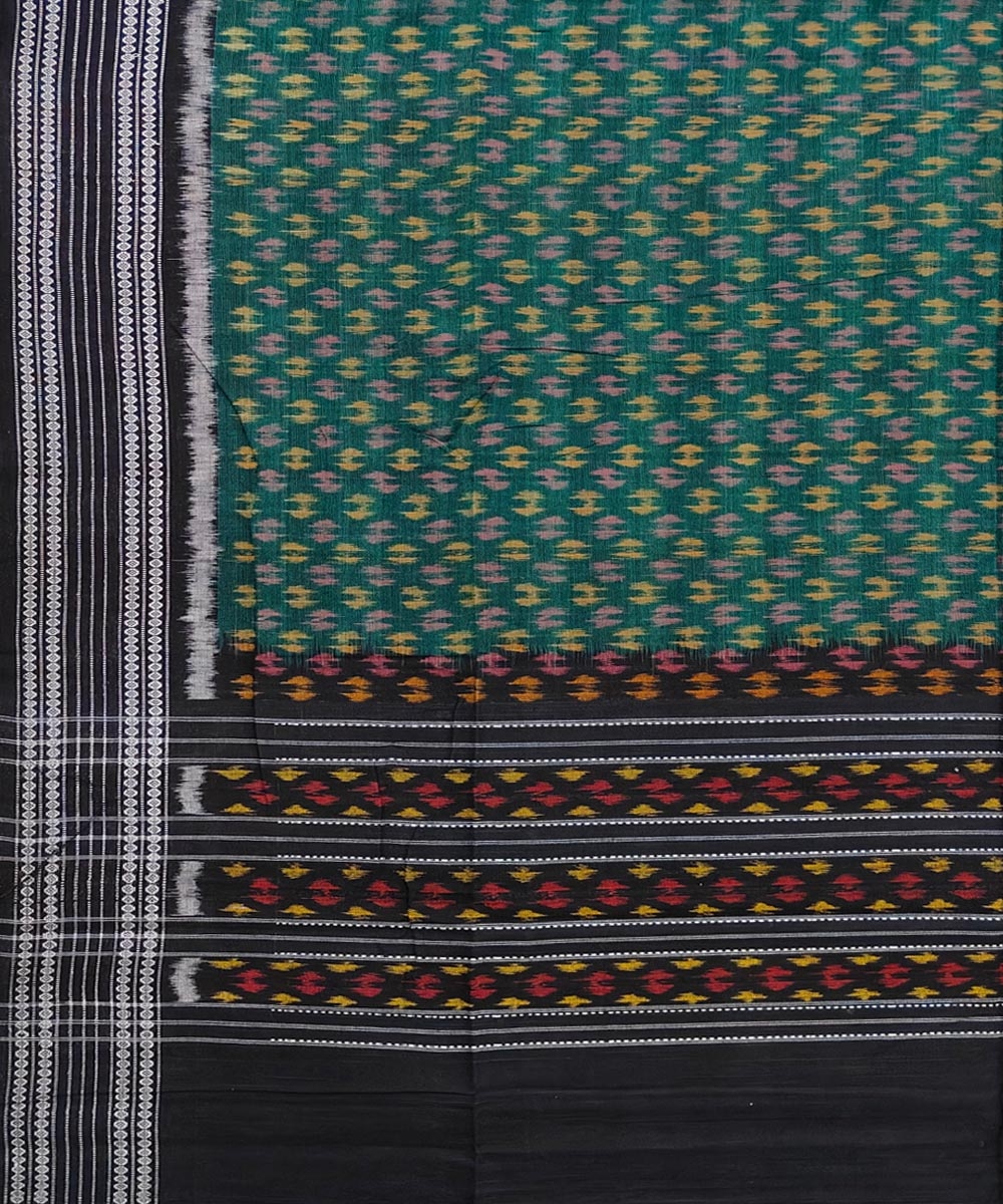 Green Black Sambalpuri Handwoven Single Ikat Cotton Dupatta(SFCDUP1724)