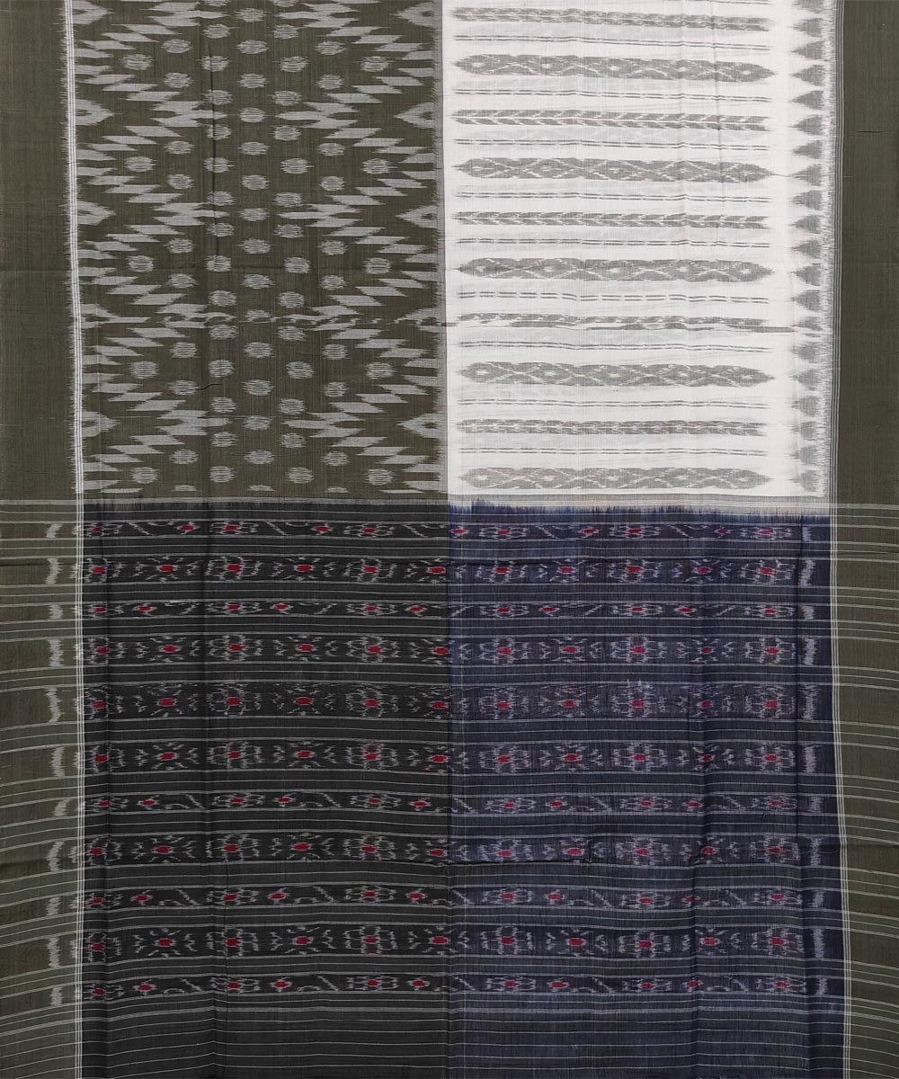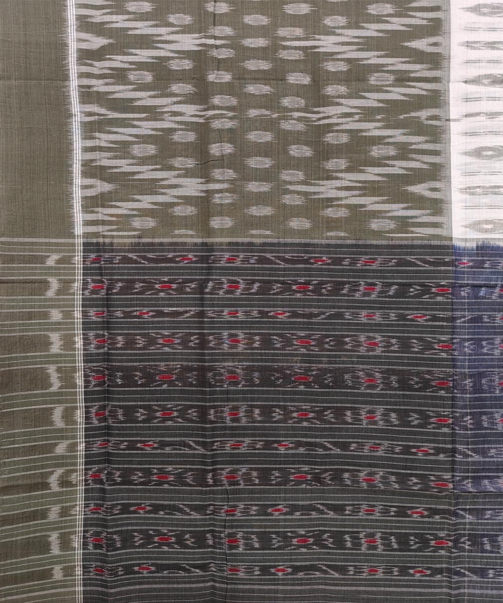 Olive White Sambalpuri Handwoven Single Ikat Cotton Saree(SFCSAR1789)