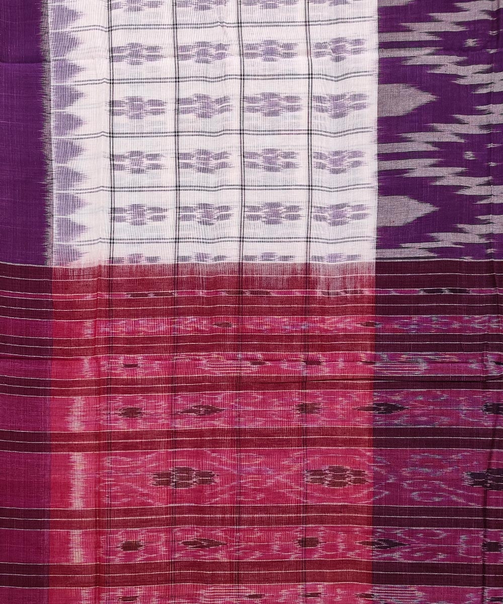 White Purple Sambalpuri Handwoven Single Ikat Cotton Saree(SFCSAR1500)